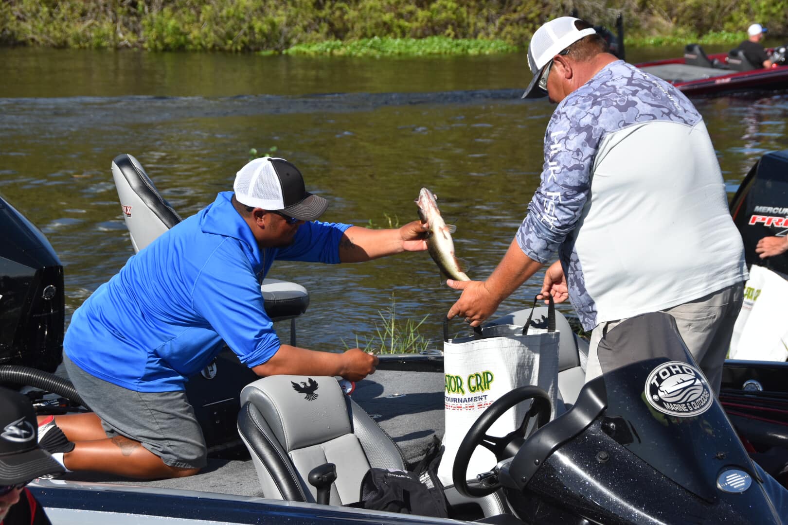 1st Place: Chris Maxwell and Michael Porter- 40.19 pounds, Blazer 595 Pro Elite, 200 HP Mercury Pro XS, 2 8-ft Power Pole Blades valued at $55,000.00 + $500.00 Michael J. Blocher Memorial Award