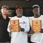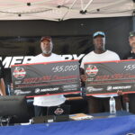 The final weigh-in was a tense one. Maxwell and Porter’s kicker was weighed first and came in at 6.62 pounds. The duo needed 11.65 pounds in total to claim victory over Blake Briscoe and Brad Briscoe. The scales settled at 14.97 pounds for a 2 day total of 40.19 pounds to win a new Blazer Boats 595 Pro Elite powered by a 200 HP Mercury Pro XS and two 8 foot Power-Pole Blades valued at $55,000.00. They also were awarded the Michael J. Blocher Memorial Award for the Frequent Fishing Program worth $500.00. Teams who compete in 12 events or more throughout the season are entered into the Frequent Fishing Program and compete against one another at the championship. The highest finishing team from the program at the Championship is awarded the Michael J. Blocher Memorial Award.